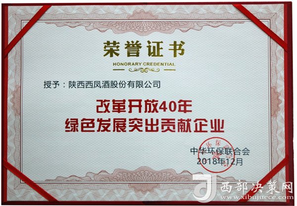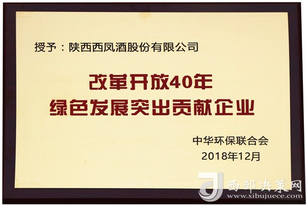 近日,在中華環(huán)保聯(lián)合會組織的“紀(jì)念改革開放40年中國企業(yè)綠色發(fā)展成就主題活動”中,陜西西鳳股份公司因在綠色發(fā)展、生態(tài)文明、環(huán)境保護(hù)、節(jié)能減排等方面的突出成績,榮獲改革開放40年“綠色發(fā)展突出貢獻(xiàn)企業(yè)”殊榮。標(biāo)志著該公司在實施綠色發(fā)展戰(zhàn)略、生產(chǎn)綠色產(chǎn)品、使用綠色技術(shù)等方面的卓越成果得到國家環(huán)保部門的充分肯定,達(dá)到了企業(yè)經(jīng)濟(jì)效益、社會效益、環(huán)境保護(hù)效益的有機統(tǒng)一。