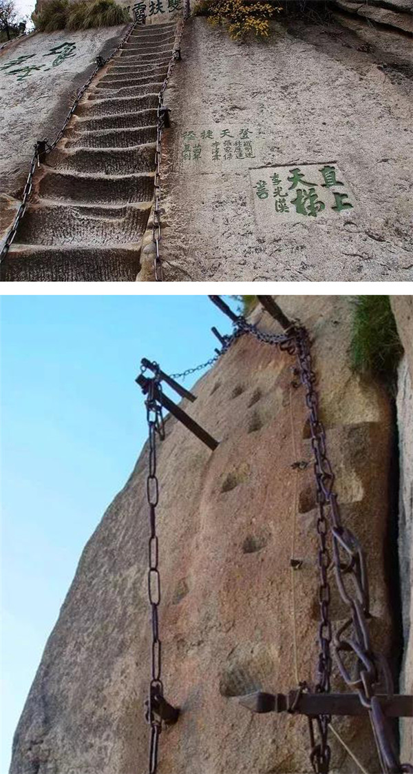 華山,被譽(yù)為奇險天下第一山。它有著布滿奇險的自古華山一條路,其中包括千尺幢、百尺峽、老君犁溝;它有著垂直90°的云梯;它有著一邊懸崖、一邊峭壁的長空棧道;它有著寒索垂于凌空的鷂子翻身。來華山挑戰(zhàn)自我、挑戰(zhàn)奇險,感受大自然的神奇。