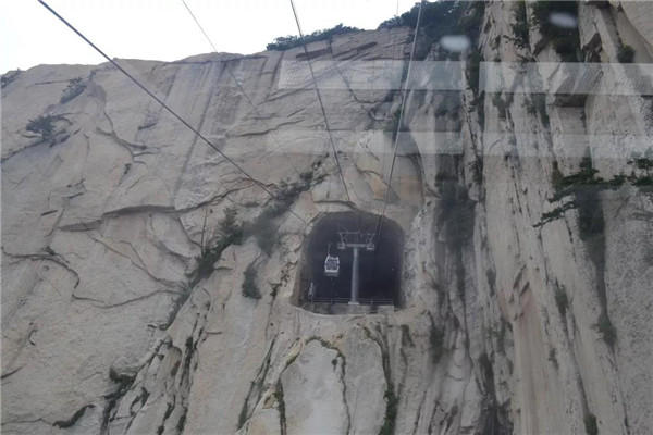 從華山的群峰頂飛越,就像乘坐飛機(jī)往云層之上爬升一樣,心中提著一口氣,不敢呼也不敢喘;遇到陡直的升降,好像失去控制的電梯讓人緊張。可是索道轎箱外的奇險,又會讓人情不自禁驚呼、尖叫!正是上午巳時,盛夏的驕陽耀眼炙熱。四周刀劈斧鑿般的潔白山體,在無遮無掩的烈日的照耀下,白的晃眼,也許這就是“華山睛雪”的由來。
