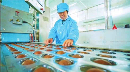 每枚鴨蛋都要經(jīng)過嚴(yán)格檢查。 文/攝本報記者劉心楊
