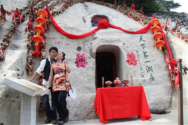 天下第一洞房——相傳秦穆公的女兒弄玉與吹簫人蕭史相愛(ài)后,乘龍跨鳳,騰空來(lái)至華山,鑿洞成婚并得道成仙,“洞房”一詞也是源于此。