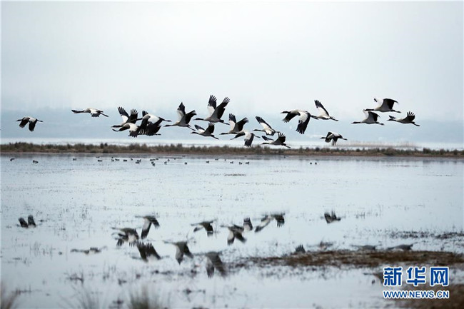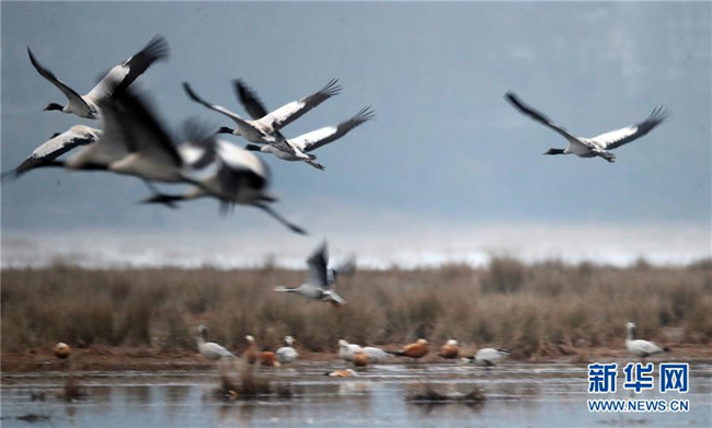 草海保護區(qū)是黑頸鶴越冬的主要棲息地之一,其在草海越冬期約為每年10月下旬到次年3月底。黑頸鶴是全球唯一在高原生長、繁殖的鶴類。新華社記者楊楹攝