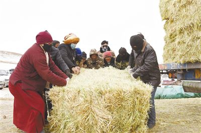 2月25日,玉樹藏族自治州玉樹市上拉秀鄉(xiāng)日瑪村,寒風瑟瑟,村民內(nèi)心卻是無比溫暖,黨委政府下?lián)艿娘暡萘弦慌慌乩\到了日瑪村,村民自發(fā)組織卸載搬運飼草料,分到飼草料的牧民,用自家面包車拉運飼料,臉上掛滿了笑容。