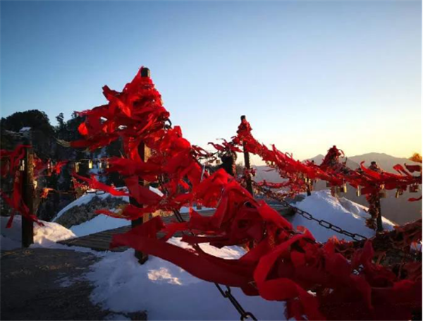 作為五岳之一,華山的巖石山峰每天都吸引著數(shù)百數(shù)千的游人。他們大多乘坐中巴,購(gòu)買(mǎi)門(mén)票(保險(xiǎn)費(fèi)自愿),由索道直達(dá)北峰。在這里你可以從這些鑿在石頭上的道路到達(dá)其他四峰。一路上有寺廟可供祈愿,在鐵鏈上系上刻好的銅鎖,雖然是一個(gè)無(wú)神論的國(guó)家,中國(guó)人卻是很迷信。