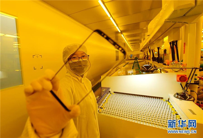英利能源(江西)有限公司員工在檢測光伏電池片(2018年12月11日攝)。新華社記者 宋振平 攝