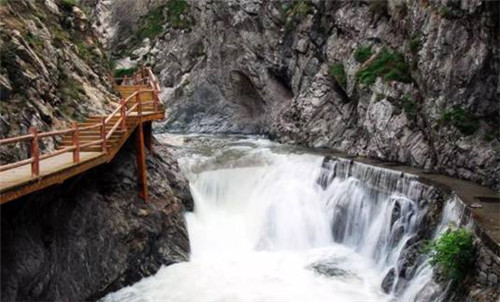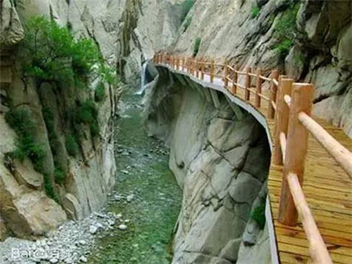 第二游:仙峪(仙峪,又名車箱谷,在華山峪西,與華山峪僅一嶺之隔,傳說(shuō)古時(shí)黃初平、黃初起弟兄在此牧羊成仙,因而得名。仙峪深五十余里,峪道窄狹清幽,山路崎嶇蜿蜒,河流湍急,山石險(xiǎn)峻,多處路段鑿崖,加棧凌空通過(guò)。進(jìn)峪五里處,有斜嶺橫阻,令人有谷盡路絕之感,然越嶺橫度,又平添柳暗花明的情趣)。