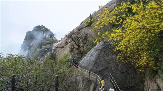 在華山北峰處,有一處巨大的摩崖石刻,上寫(xiě)四個(gè)大字“華夏之根”。意思是華山是中華民族的發(fā)源地,是華夏民族的根系。