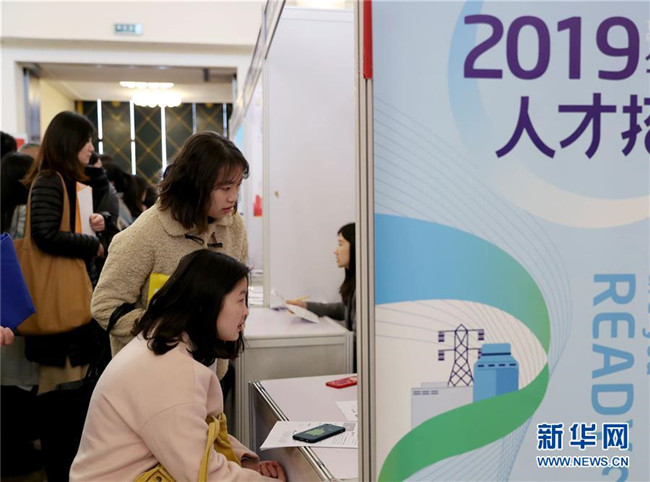 3月24日,求職者在招聘會(huì)上了解崗位信息。當(dāng)日,由上海、江蘇、浙江、安徽聯(lián)合舉辦的“長(zhǎng)三角地區(qū)春季人才交流洽談會(huì)暨2019屆高校畢業(yè)生擇業(yè)招聘會(huì)”在上海展覽中心舉行。 新華社記者 劉穎 攝