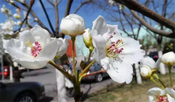 白色的花本來就有一種出世的風(fēng)儀,“梨花有思緣和葉”,纖塵不染,再帶了縹緲的仙香,如仙女尋春,增添一分天然的風(fēng)流。