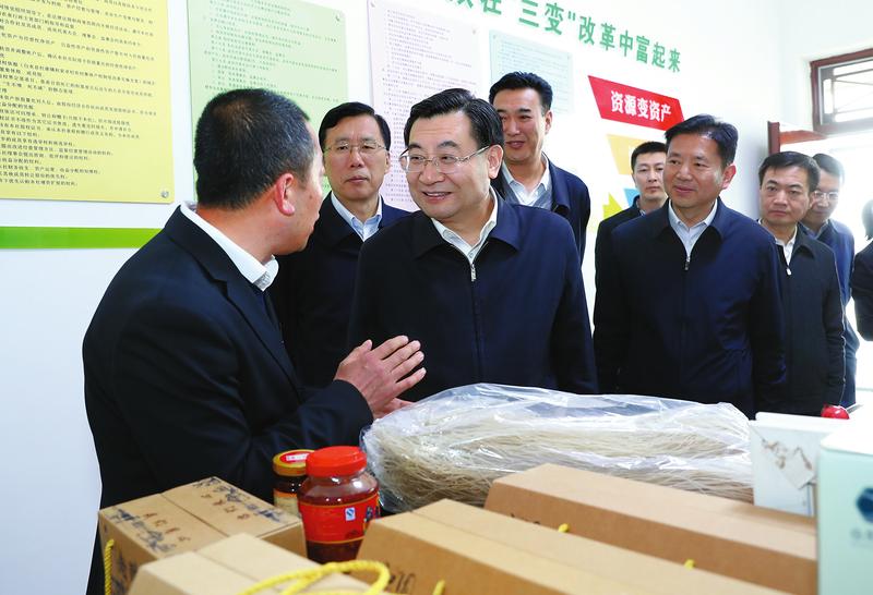 三月二十七日,省委書記胡和平來到白水縣杜康鎮(zhèn)和家卓村,聽取“黨支部+村集體經濟+園區(qū)+貧困戶”扶貧介紹,詳細了解設施農業(yè)發(fā)展、田園綜合體運行、群眾增收等情況。 記者 宋紅梅攝