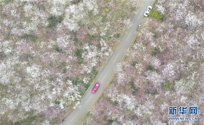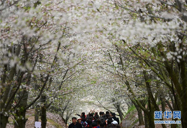 仲春時(shí)節(jié),位于貴州省貴安新區(qū)櫻花觀光園內(nèi)的櫻花競相綻放,如白雪般的櫻花海吸引眾多游客前來賞花觀光。