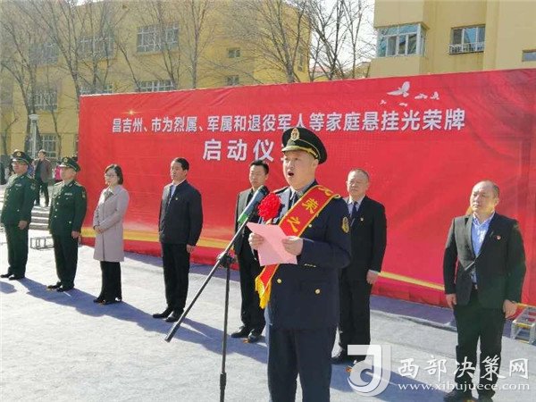 新疆昌吉為烈屬、軍屬和退役軍人等家庭懸掛光榮牌啟動(dòng)儀式