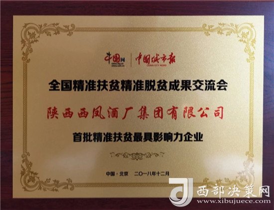 西鳳集團(tuán)公司榮獲全國(guó)“首批精準(zhǔn)扶貧最具影響力企業(yè)”榮譽(yù)稱號(hào)