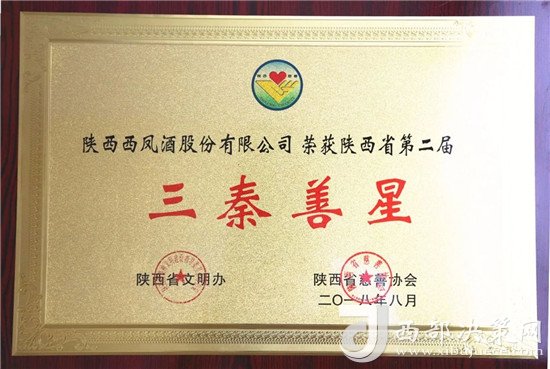 西鳳股份公司被授予陜西省第二屆“三秦善星”榮譽(yù)稱號(hào)