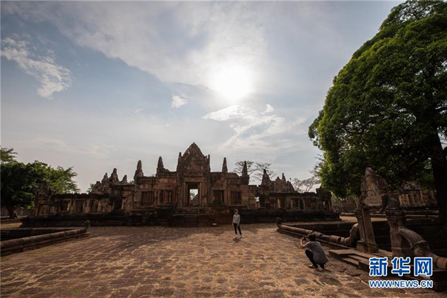 這是4月5日拍攝的泰國(guó)武里南府低城寺。 一年一度的“登帕儂隆山節(jié)”在泰國(guó)東北部毗鄰柬埔寨的武里南府帕儂隆山舉辦。當(dāng)?shù)厝艘怨叛b巡游展示獨(dú)特的傳統(tǒng)文化,希望能吸引更多外國(guó)游客、促進(jìn)當(dāng)?shù)芈糜螛I(yè)發(fā)展。 新華社記者 張可任 攝