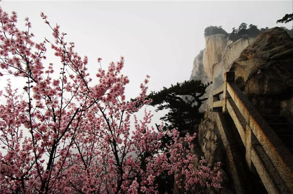 四月的春天,伴隨著微微涼意,華山山間的桃花開得格外鮮艷,四月的清風(fēng)輕輕吹,空氣中彌漫著淡淡的花香。最美不過人間四月天,天空是湛藍(lán)的,草地是翠綠的,大地是溫暖的,花兒是五顏六色的。呼吸著清晨新鮮的空氣,美好的一天從登上華山開始。