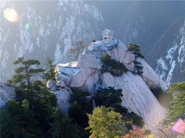 華山古稱“西岳”,是我國(guó)著名的五岳之一,南接秦嶺,北瞰黃渭,扼守著大西北進(jìn)出中原的門戶。華山由一塊完整碩大的花崗巖體構(gòu)成,有東、西、南、北、中五峰,主峰有南峰“落雁”、東峰“朝陽”、西峰“蓮花”,三峰鼎峙。最高峰也是五岳最高峰—南峰“落雁”海拔2154.9米。