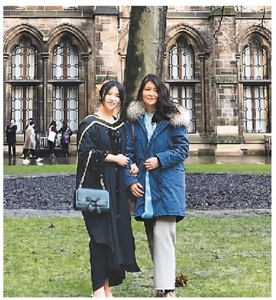畢業(yè)季,趙文琦的媽媽也來(lái)到了英國(guó)見(jiàn)證她的畢業(yè)。這讓她感到驕傲。“原本畢業(yè)了就非常開心;這次和媽媽在一起參加畢業(yè)典禮,我感覺(jué)終于為媽媽爭(zhēng)了一次光,更加開心了!”她說(shuō)。