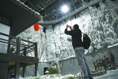 除了眾多親子游客,不少年輕人也特地前來。中影基地6號棚的江南水鄉(xiāng)拍攝小景跟前,聚集了許多年輕人圍觀一對青年體驗拍攝《大話西游》中的經(jīng)典場景。全副武裝扮演至尊寶的是來自北京吉利學院的學生張江。“曾經(jīng),有一份真誠的愛情放在我面前,我沒有珍惜,等到我失去的時候才后悔莫及……”當背出了至尊寶的經(jīng)典臺詞時,張江依然覺得“很尬”,難以入戲。導演趕緊上來給他說戲,“這時候劍距離你的喉嚨只有0.01公分,你要仰起頭……”這當口,飾演紫霞仙子的女同學已經(jīng)拿不住劍,手腕松了下來。一個小時過去了,這一條還是沒能過,只好休息一會兒。“人生第一次嘛,體驗體驗。”張江說。