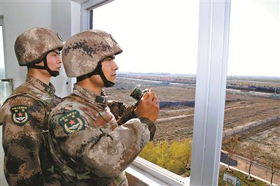 連隊官兵在哨樓上執(zhí)勤。