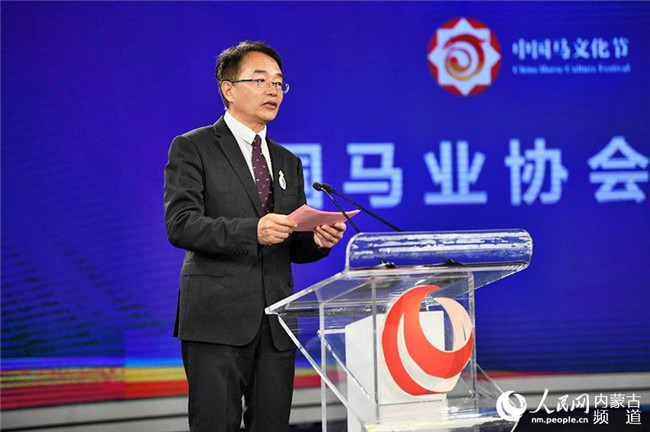 中國馬業(yè)協(xié)會(huì)副會(huì)長蔡猛發(fā)布第二屆中國馬文化節(jié)暨首屆內(nèi)蒙古國際馬文化博覽會(huì)總體情況。