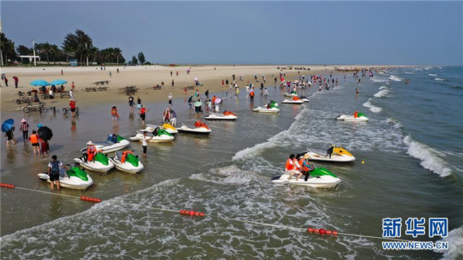 近日,隨著氣溫回升,眾多游客來到廣西北海銀灘旅游,享受碧海藍天帶來的樂趣。 新華社記者 張愛林 攝