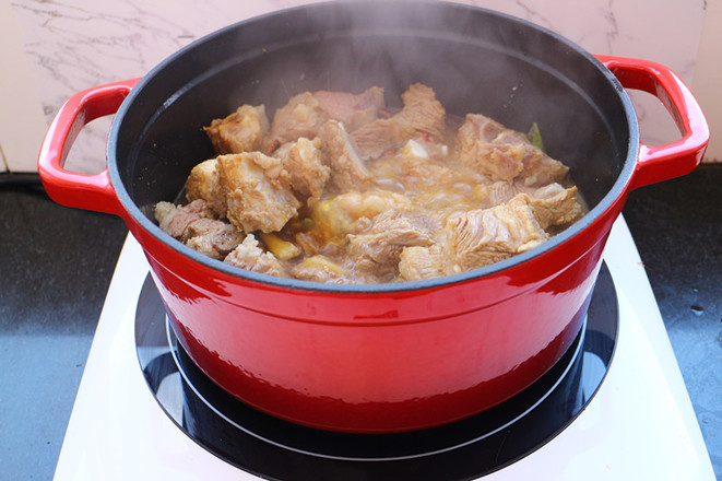 2. 排骨中途放進去,以防提前燉的太爛糊了。