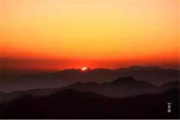 是時(shí),但見(jiàn)夜幕自東方悄然隱退,晨曦初露,漸漸霞光瑰麗,云源奔涌。瞬間,一輪火球噴薄而出,繼而光芒四射,氣象萬(wàn)千,整個(gè)世界大放光明,游人身心為之一振。待云霧散盡,蒼松翠柏,則更加清麗悅目,美妙神奇。故而,游名山者必登華山,登華山者必觀日。華山日出亦被列為華山自然風(fēng)光中的重要景觀之一。
