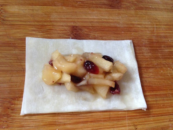 主料:蘋果1個  餛飩皮30張  蔓越莓干20克   黃油(餡料)8克