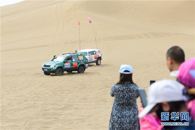 五一長假期間,新疆鄯善縣舉行庫木塔格沙漠T2沙漠全國挑戰(zhàn)賽,吸引眾多游客前來觀看(5月2日攝)。新華社發(fā)(丁磊攝)