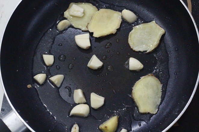 3.熱油起鍋,放入蒜、生姜偏炒出香味。