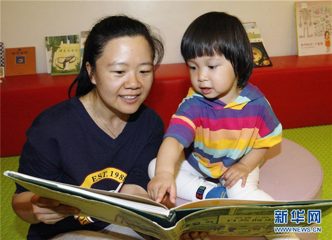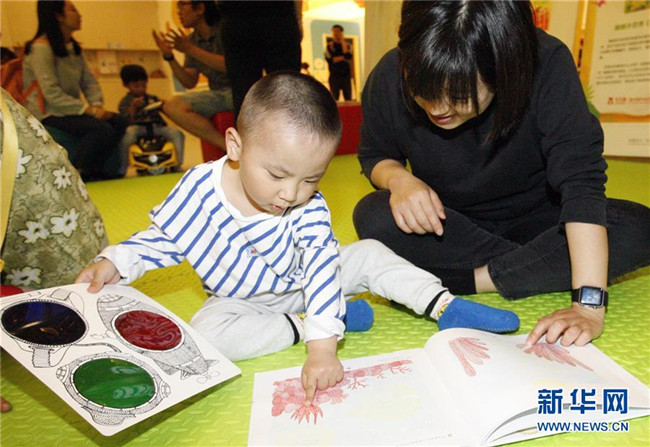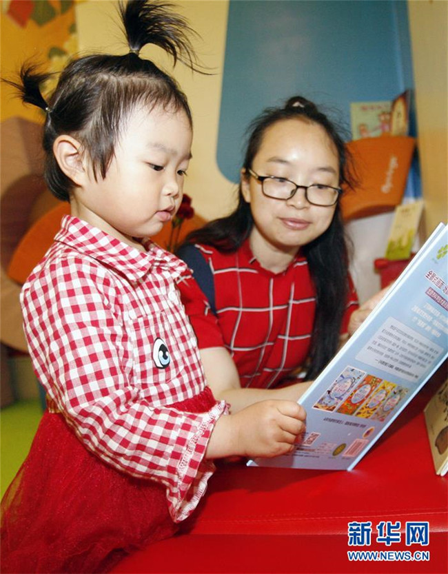 5月12日,一名孩子在家長(zhǎng)陪伴下閱讀繪本。新華社記者 劉蓮芬 攝