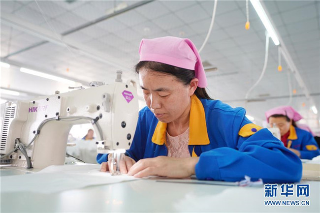 5月16日,鹽山縣慶云鎮(zhèn)村民在凱瑞斯服裝廠工作。該服裝廠總部位于雄安新區(qū)容城縣,為配合雄安新區(qū)產(chǎn)業(yè)轉(zhuǎn)型升級,于2018年初來到河北省鹽山縣開設(shè)工廠。 新華社記者 邢廣利 攝