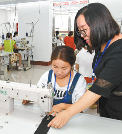 河曲縣開展全民技能提升培訓(xùn),老師指導(dǎo)學(xué)員加工服裝。