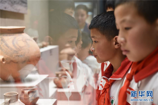 5月31日,學生們在寧夏固原博物館參觀。新華社記者 唐亞蒙 攝