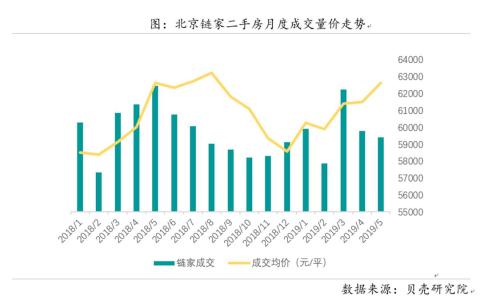 北京鏈家二手房月度成交量?jī)r(jià)走勢(shì)。來源:貝殼研究院
