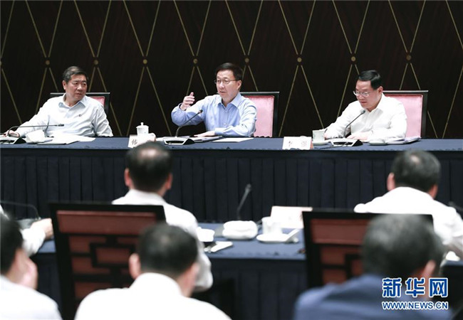6月3日,中共中央政治局常委、國務(wù)院副總理、推動(dòng)長三角一體化發(fā)展領(lǐng)導(dǎo)小組組長韓正在上海主持召開推動(dòng)長三角一體化發(fā)展領(lǐng)導(dǎo)小組會議。 新華社記者 龐興雷 攝