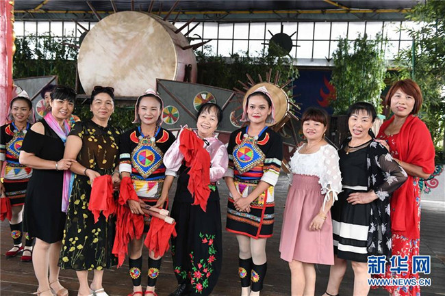 基諾族演員在表演大鼓舞(6月1日攝)。