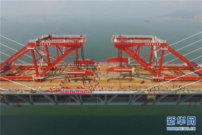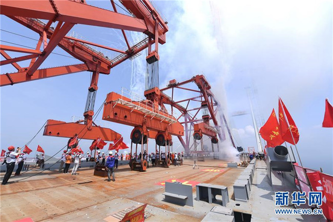 6月5日,福平鐵路平潭海峽公鐵兩用大橋元洪航道橋主橋正式合龍。 新華社記者 林善傳 攝