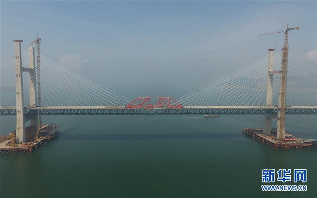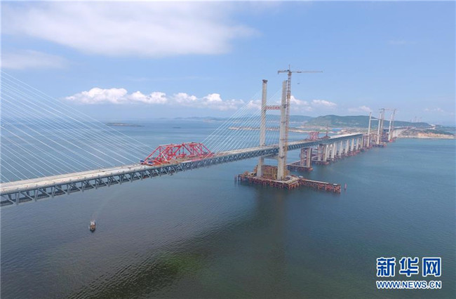 福平鐵路平潭海峽公鐵兩用大橋元洪航道橋主橋正式合龍(6月5日攝)。  新華社記者 林善傳 攝