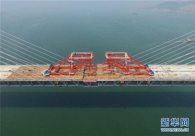 福平鐵路平潭海峽公鐵兩用大橋元洪航道橋主橋正在合龍(6月5日攝)。 新華社記者 林善傳 攝