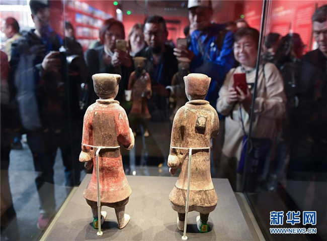 觀眾在中國(guó)國(guó)家博物館舉行的“歸來(lái)——意大利返還中國(guó)流失文物展”上欣賞文物。展覽展出了700余件意大利返還中國(guó)的文物藝術(shù)品(2019年4月24日攝)。新華社記者 李賀 攝