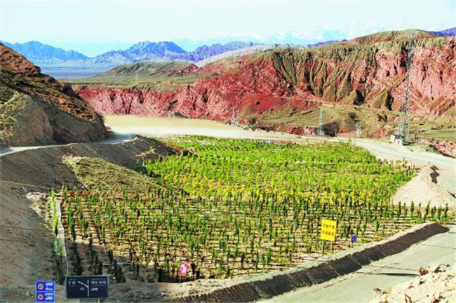 新疆紫金鋅業(yè)在礦區(qū)內(nèi)新植的樹苗正茁壯成長(zhǎng)(攝于6月3日)。肖鐵龍攝
