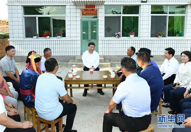 7月15日至16日,中共中央總書記、國家主席、中央軍委主席習(xí)近平在內(nèi)蒙古考察并指導(dǎo)開展“不忘初心、牢記使命”主題教育。這是15日下午,習(xí)近平在赤峰市喀喇沁旗河南街道馬鞍山村村民張國利家,同基層干部群眾代表座談交流。 新華社記者 謝環(huán)馳 攝