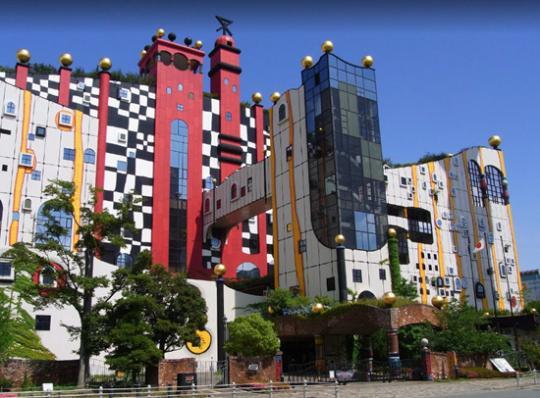 而在《名偵探柯南》里出現(xiàn)的垃圾處理廠也有真實(shí)場景。由宮崎駿的偶像百水先生進(jìn)行外觀設(shè)計的大阪舞洲島垃圾處理廠,遠(yuǎn)遠(yuǎn)看去仿佛游樂場,不知情的人絕不會把它和垃圾聯(lián)系在一起。處理廠干凈整潔、色彩明亮得恍若安徒生的童話世界,紅黃的條紋象征著燃燒的火焰,形態(tài)各異的可愛窗子與爬山虎裝點(diǎn)著墻壁,標(biāo)志性的長管煙囪令人想起長發(fā)公主的城堡……