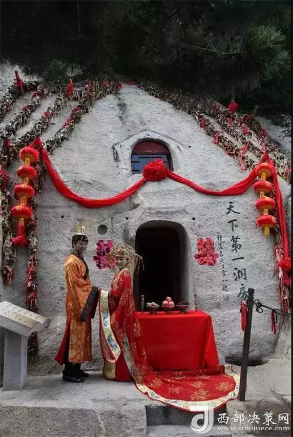天下第一洞房位于華山西峰東側(cè)半腰,從蓮花橋經(jīng)十八譚登山路的左側(cè)即達(dá),相傳為簫史弄玉鑿洞成婚之所。