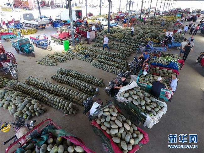 在新疆果品(伽師)批發(fā)交易市場,客商在挑選伽師瓜(8月10日攝)。新華社記者 丁磊 攝