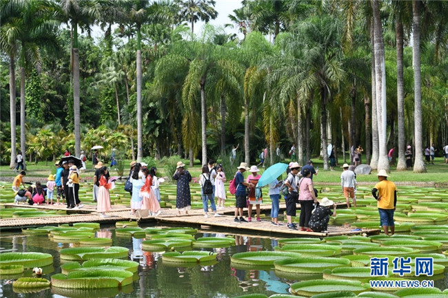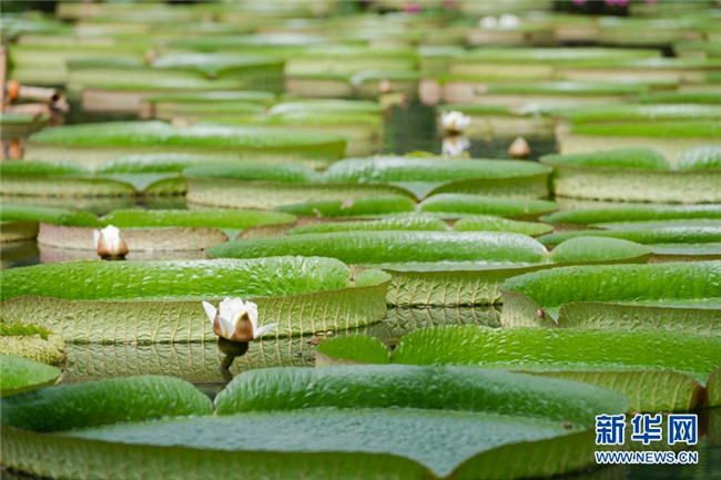 王蓮原產(chǎn)于南美洲熱帶地區(qū),西雙版納熱帶植物園自1963年開始引種,經(jīng)過多年的培育,已成為植物園一張亮麗的名片。每年6月—10月是王蓮的最佳觀賞時(shí)間,不少游客都會(huì)慕名前來,觀賞這種神奇的植物。新華網(wǎng)發(fā)(張嬌嬌 攝)