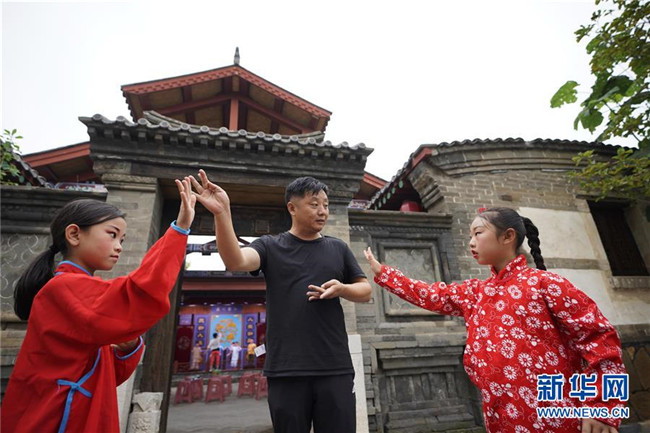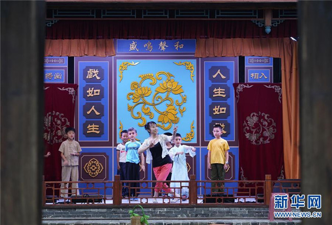 8月20日,河北省秦皇島市北戴河“裴艷玲藝術(shù)傳承基地”的老師在培訓孩子們表演京劇。