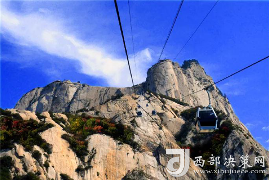現在想去往華山西峰還可以乘坐太華索道,太華索道是迄今為止世界上第一條采取崖壁開鑿硐室站房、起伏式走向、設中間站的單線循環(huán)脫掛式索道。